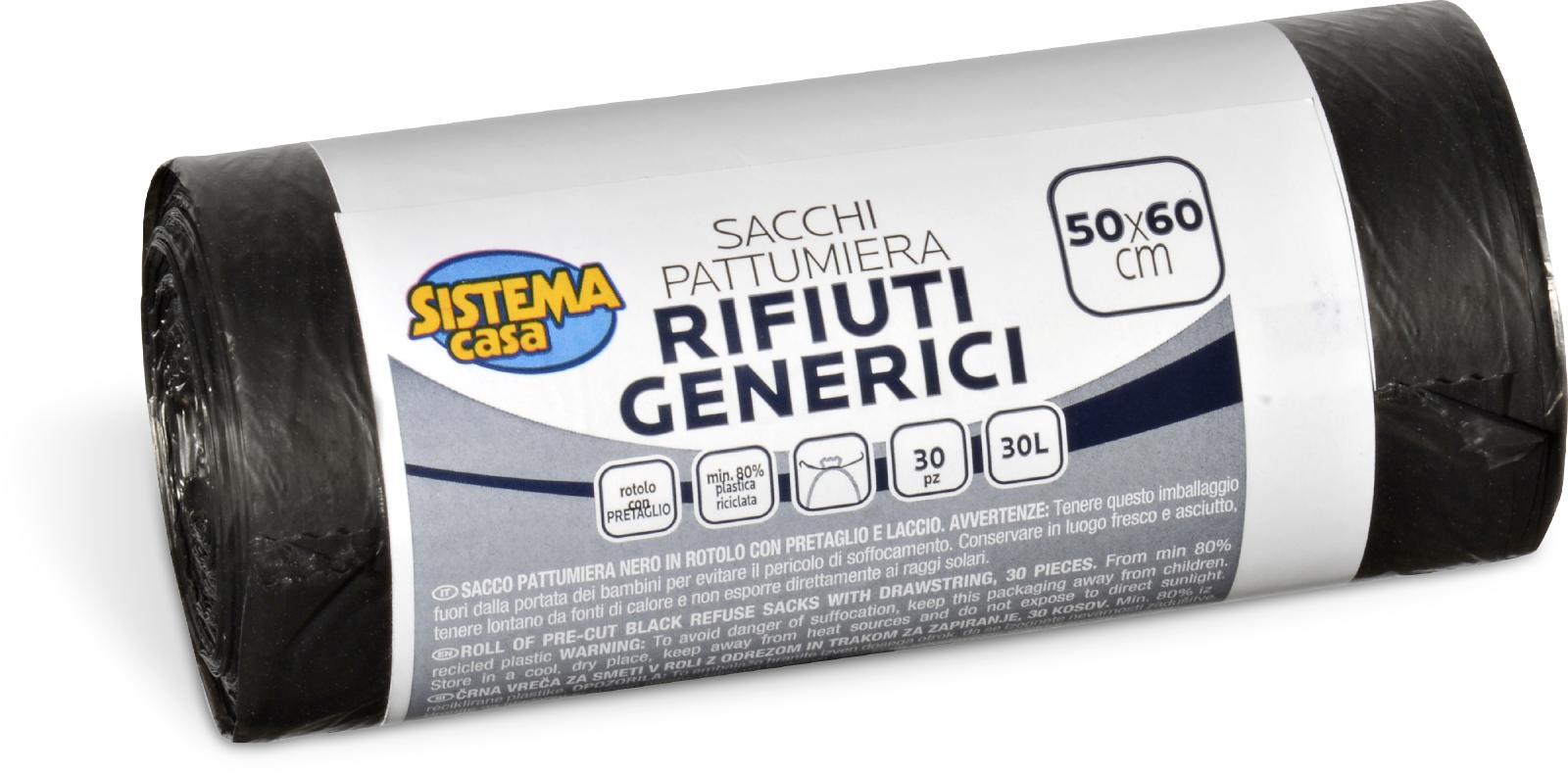 SACCHI PATTUMIERA RIFIUTI GENERICI 50 X 60 CM, 30 PZ