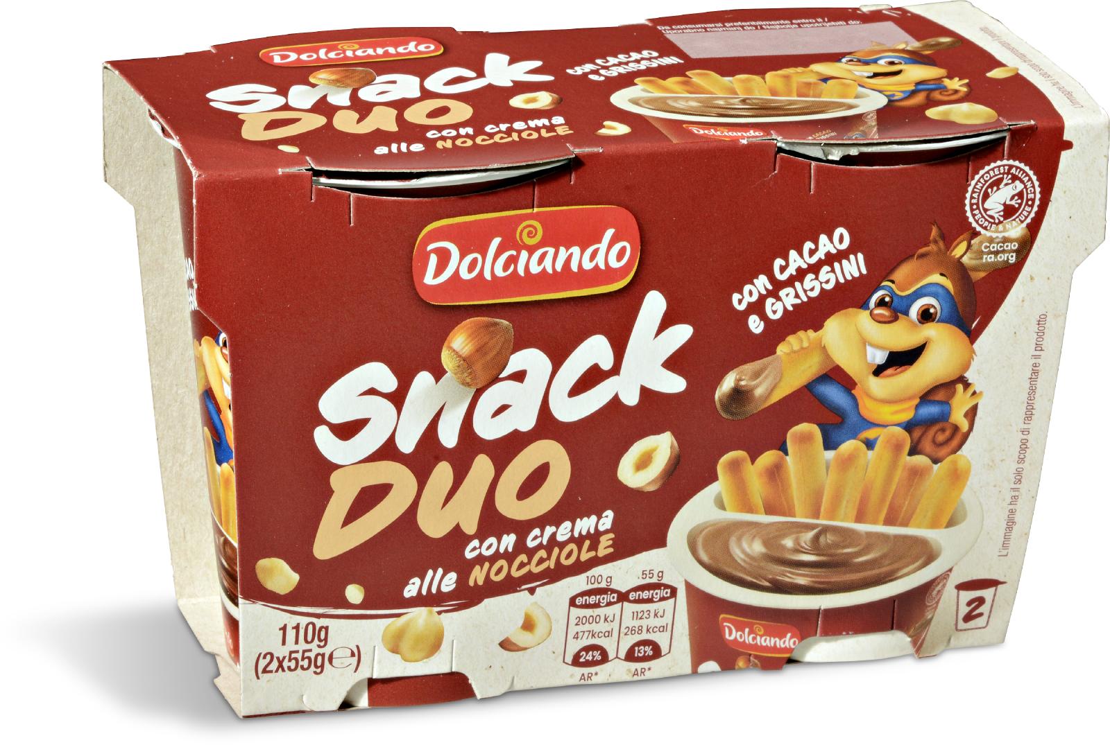 SNACK DUO CON CREMA ALLE NOCCIOLE E GRISSINI