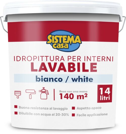 Per interni, alta traspirabilità, colore bianco, 14 l, resa con una mano 120 m², utilizzabile con pennello, rullo e pistole a spruzzo.