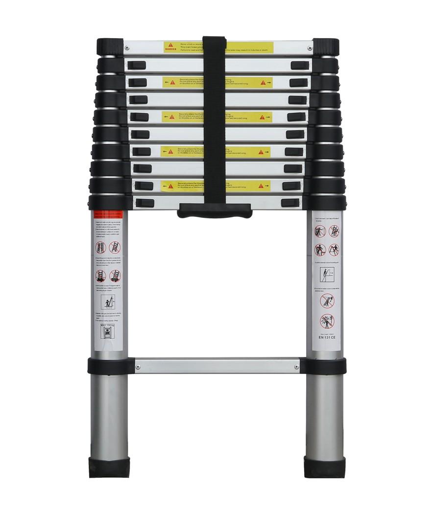 Estensibile fino a 3,2 m. Struttura in lega di alluminio. Portata massima 150 kg. Si ripiega fino a 80 cm per un trasporto comodo e salvaspazio. Certificata EN131.