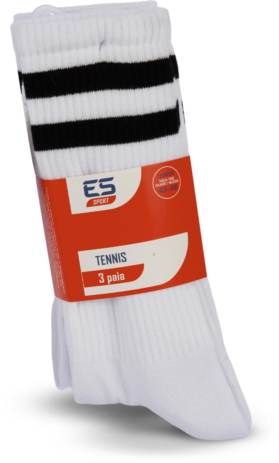 Calza con costina e soletta in spugna, taglie: 36-38, 39-42, 43-46, colori assortiti con 2 righe a contrasto.